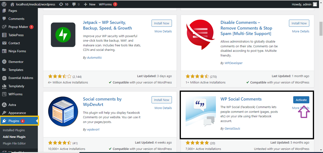 - Search for “Facebook Comments” plugin (e.g., Facebook Comments by WPDeveloper).