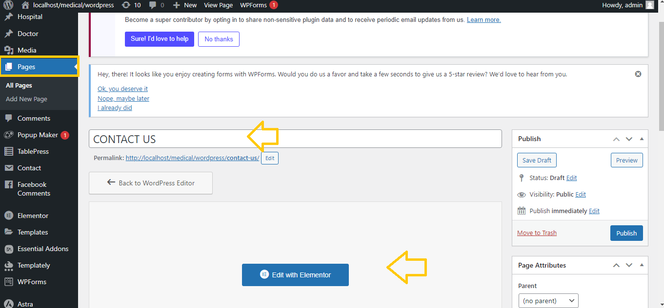 - Go to Pages > Select the page you want to edit (or create a new page).