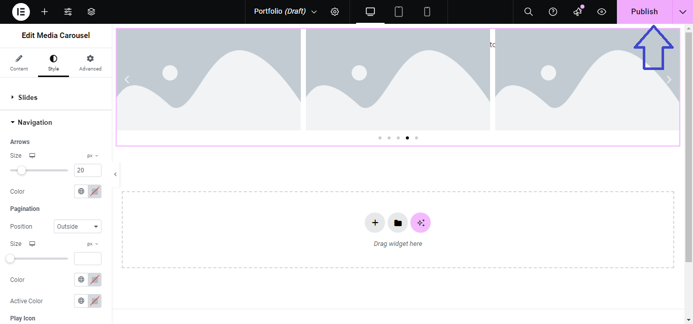 - Drag and drop the Media Carousel widget into the section you created.