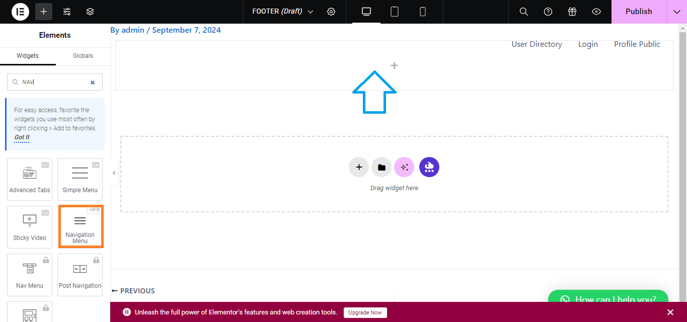 - In Elementor, search for the Text Editor or Nav Menu widget, depending on how you want to display your Privacy Policy link.
