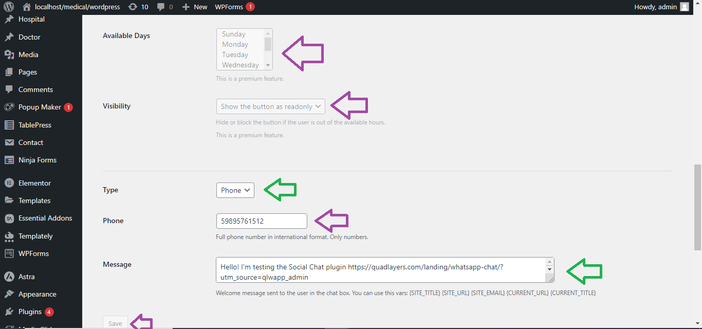 - Set display options, like where you want the WhatsApp chat button to appear (e.g., on all pages, only on mobile, etc.).