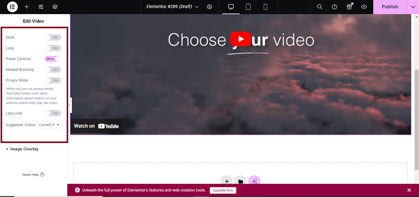 Step 2: Add the YouTube Video Widget