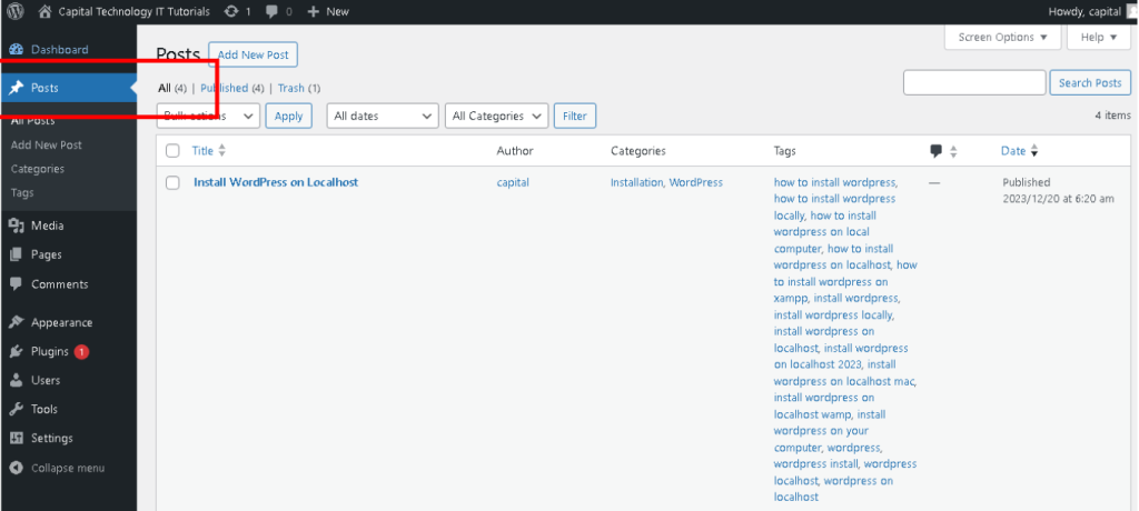 - Click on “Posts” in the WordPress admin menu.