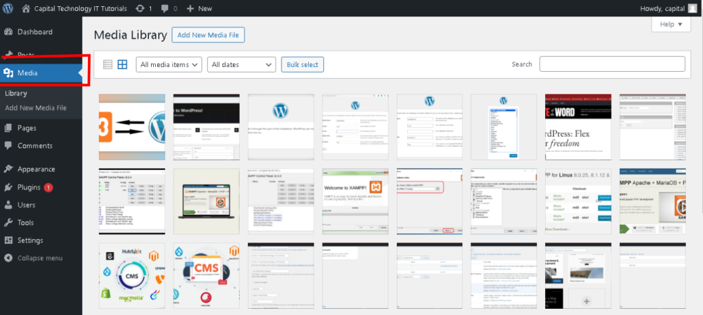 The “Media” section in WordPress is where all your uploaded images, videos, audio files, and documents are managed.