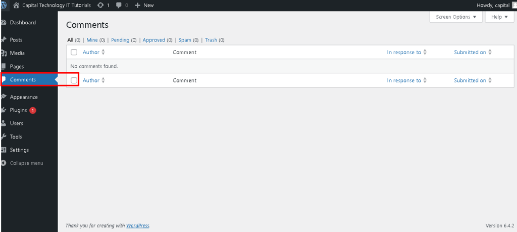 - In the WordPress admin panel, navigate to “Comments” under the “Posts” or “Pages” section.