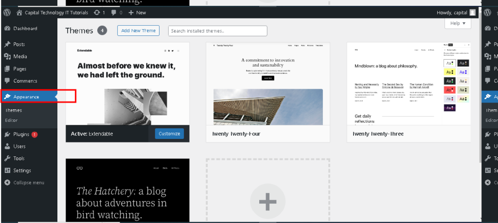 In WordPress, the “Appearance” section is where you manage the visual aspects of your website, including themes, customization options, widgets, menus, and the theme editor.