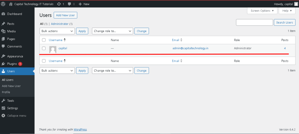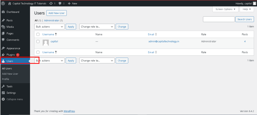 - You can view a list of all users registered on your site in the “Users” section.