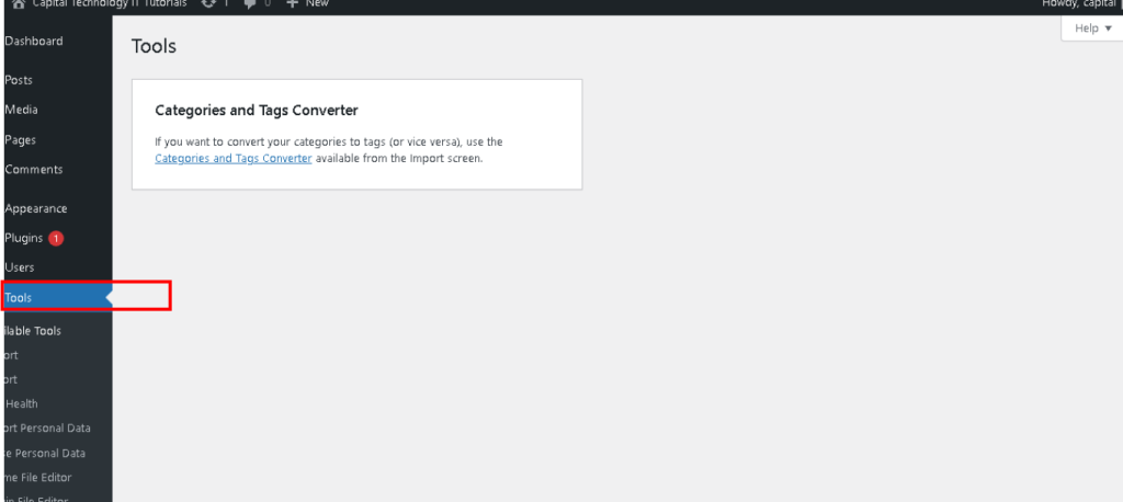 The “Tools” section in WordPress contains utilities and features that facilitate importing, exporting, and other site management tasks.