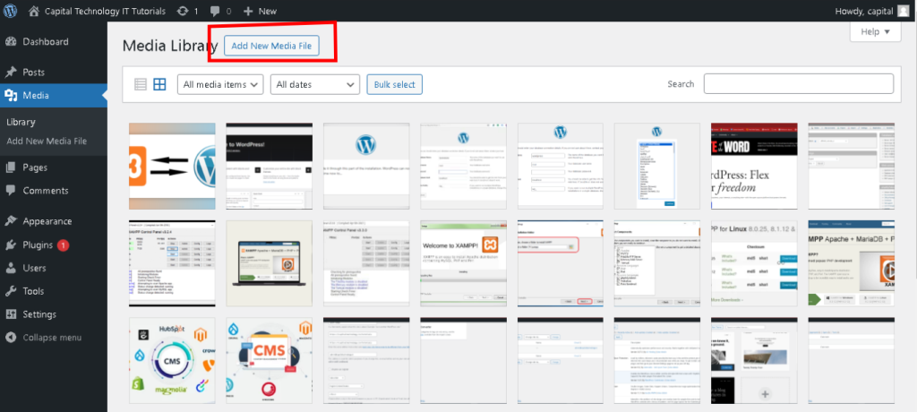 - To add new media, go to “Media” in the WordPress admin menu.