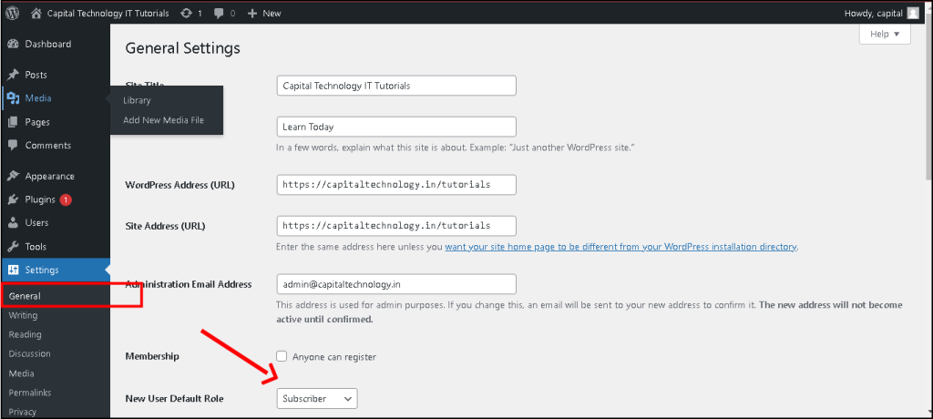 - In WordPress settings, you can control user registration settings, enabling or disabling user registration and setting default user roles for new registrations.