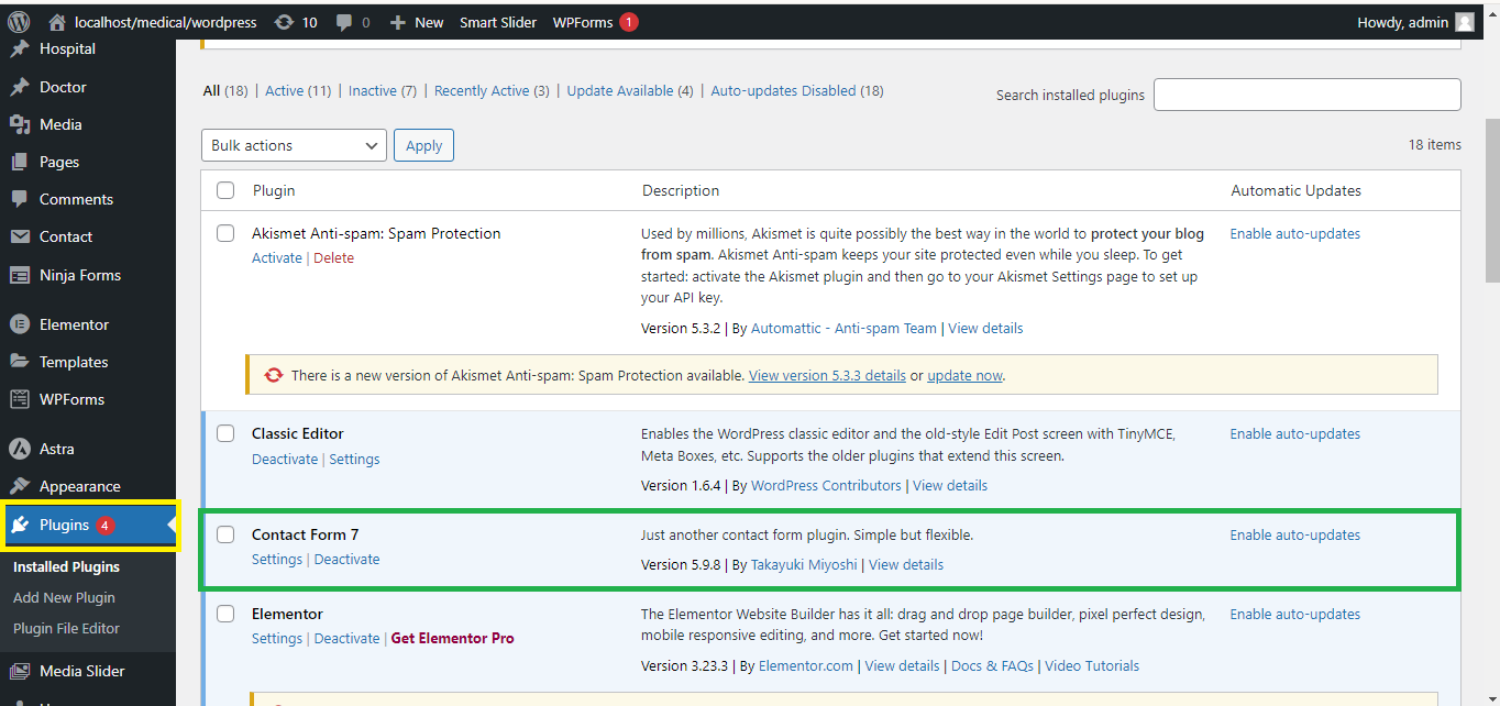 If you haven’t already, go to Plugins > Add New, search for Contact Form 7, then install and activate the plugin.