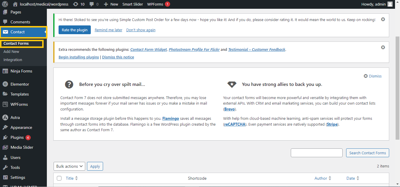 Go to Contact > Contact Forms from your WordPress dashboard. Create a new form or edit an existing one.