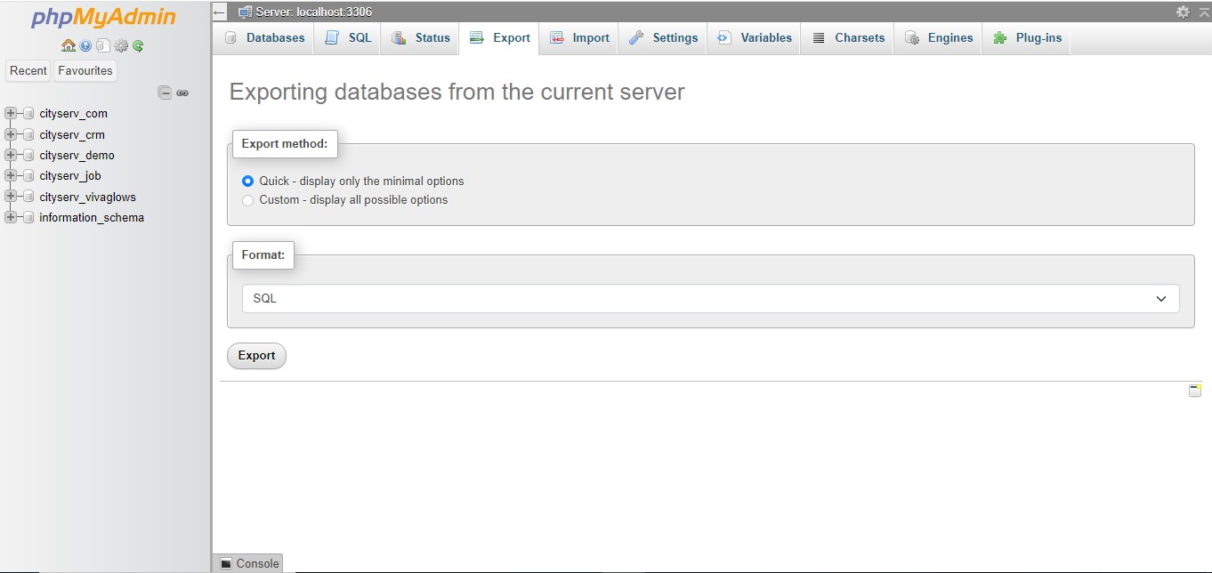 - Open phpMyAdmin from your localhost setup (e.g., XAMPP).