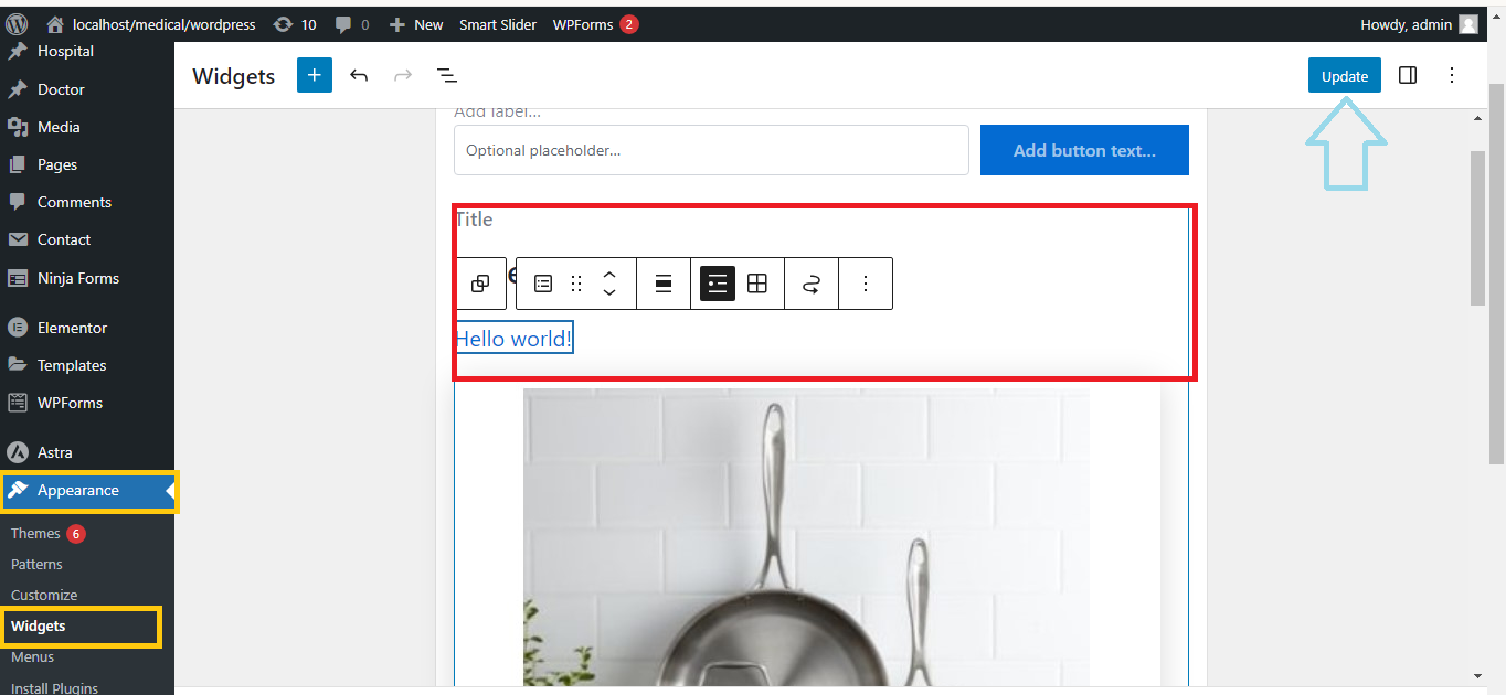1. Go to Appearance > Widgets in your WordPress dashboard.
