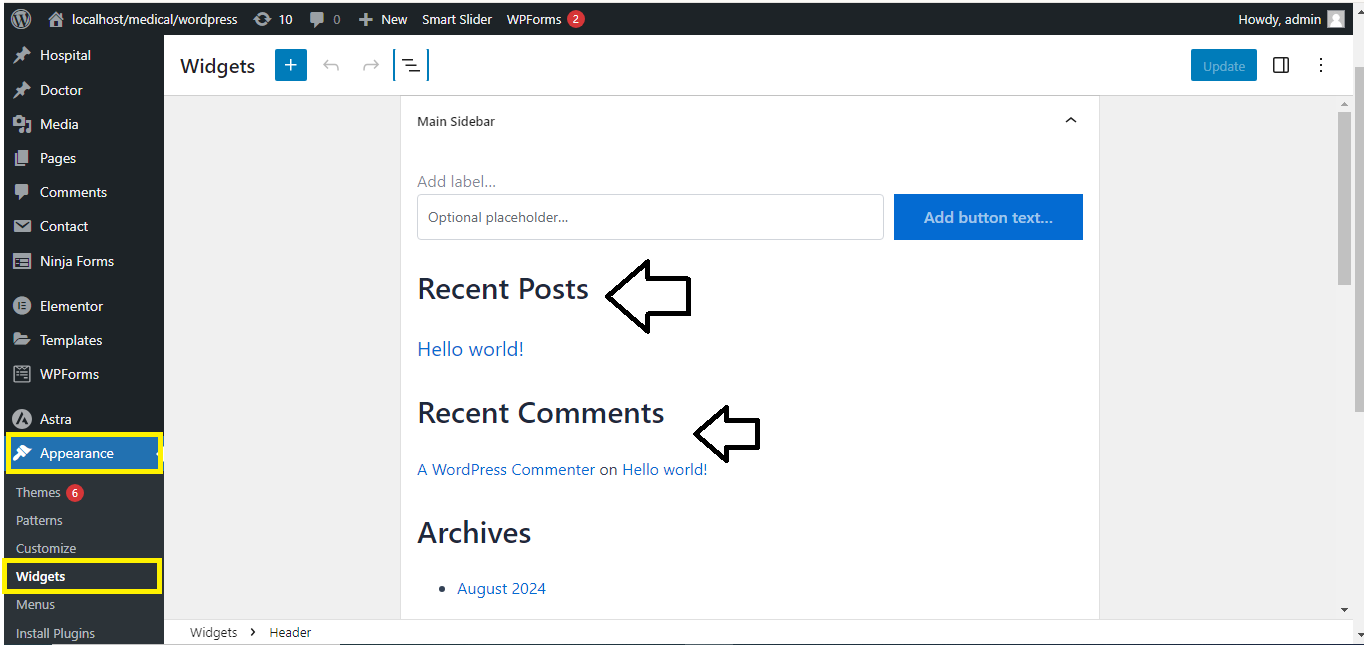 Step 2: Add the Recent Posts Widget