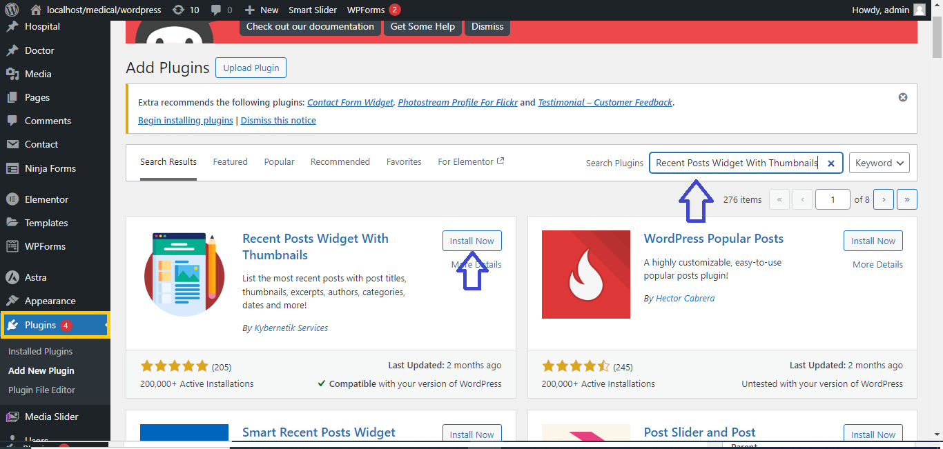 2. In the search bar, type “Recent Posts Widget With Thumbnails.”