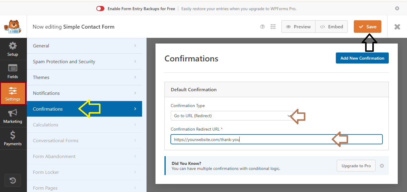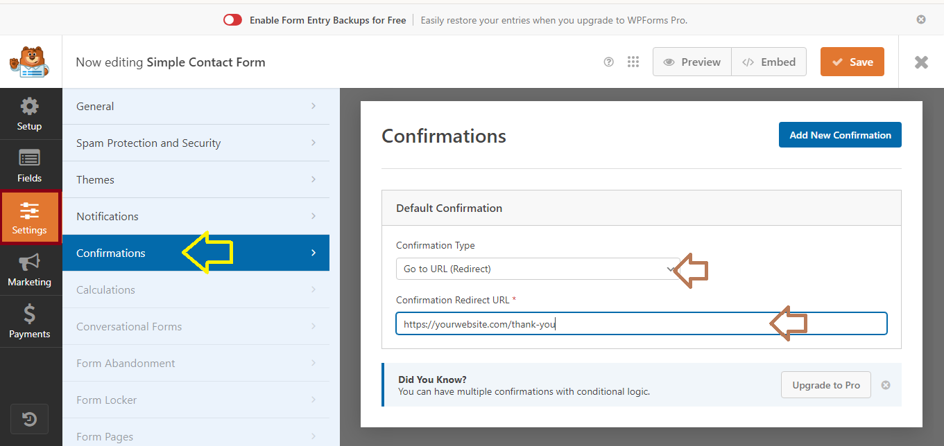 To redirect users to a “Thank You” page after submitting a WPForms form, follow these easy steps: