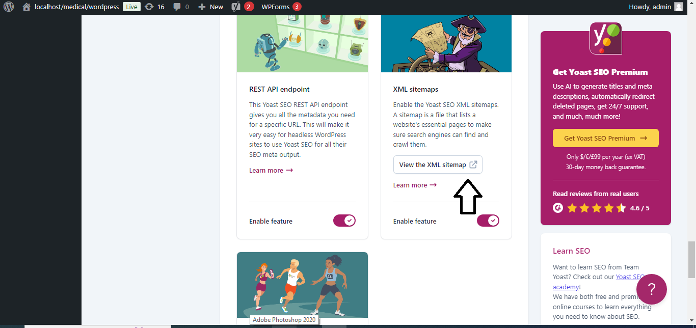- Click the question mark icon next to XML sitemaps and click on See the XML sitemap link.